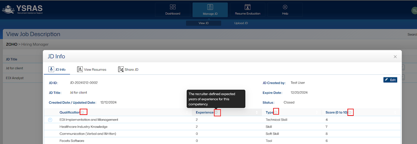 candidate’s resume aligns with the job description (JD) for a particular opening. This tool